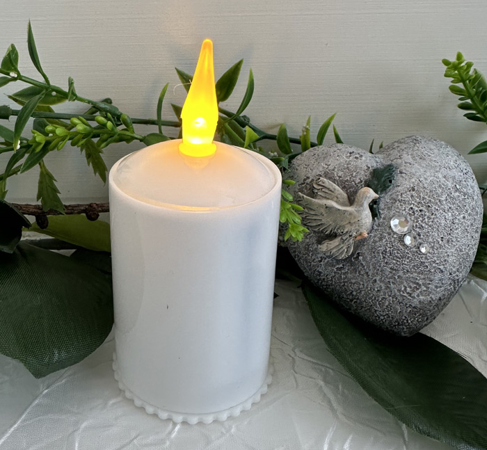 Gravlys med batteri. Batteriet skal vare i ca 60 dager. Størrelse 11 x 6 cm.