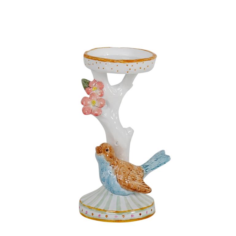 Kubbe lysestake, Retro, Hvit og med blå pynt. En herlig kubbelysestake med mange...